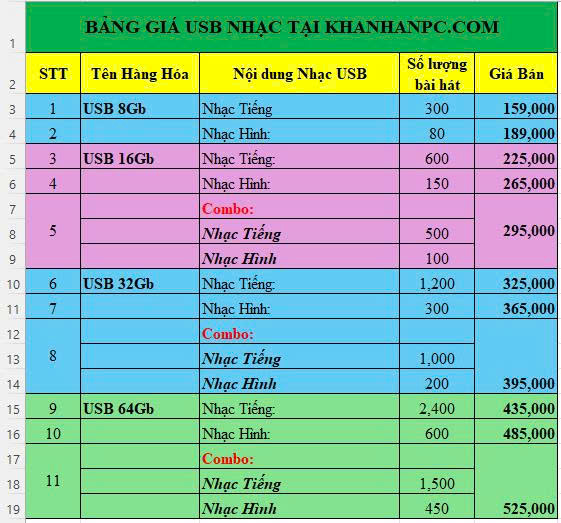 USB 16GB – Nhạc theo yêu cầu